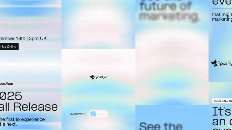 I joined the AppsFlyer rebrand early in the process, brought on by Ruth Marom, who led the brand transformation. My role started with exploration and expanded into shaping how the brand moves across product, marketing, and video.AppsFlyer is a marketing measurement and analytics platform that helps teams understand where users come from, how customers move across channels, and what drives growth. The rebrand aimed to express that complexity in a way that feels clear, confident, and alive.At the heart of the new identity is the idea of an endless energy engine running under the surface. That inner energy is represented by fluid, expressive gradients, while the outer layer is built from sharp, structured elements like vector forms, boxes, typography, and UI-inspired components. Motion became the connective tissue between these two layers.