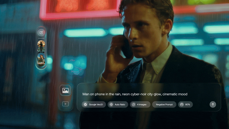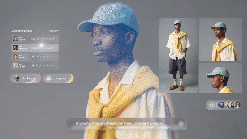 This video leans more heavily into narrative, abstraction, and atmosphere while still staying grounded in UI and product logic.The film opens with stylized title moments before moving into floating UI sequences that echo the same glassy, glowing language. From there, we introduce a concrete use case showing how creators can control characters, locations, scenes, lighting, camera lenses, art direction, makeup, and hairstyling with ease.A big part of the process was crafting a compelling use case and integrating it with bold graphic elements and heavy VFX, all working together to express the feeling of creative control and cinematic possibility.