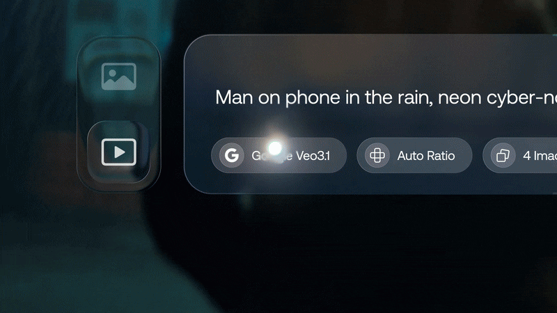 Our goal was to design a dynamic flow that demonstrates how users can guide AI outputs from prompting through editing, replacements, and final video creation.We developed a fast, energetic rhythm that highlights the full feature set while keeping everything intuitive and approachable. Glass-like UI elements, soft glows, and fluid gradients reinforce the sense of simplicity and “AI magic” behind the scenes.It was a pleasure animating this platform and working with the wide range of footage we curated and scripted, blending real assets with AI-generated visuals to create a seamless, polished experience.