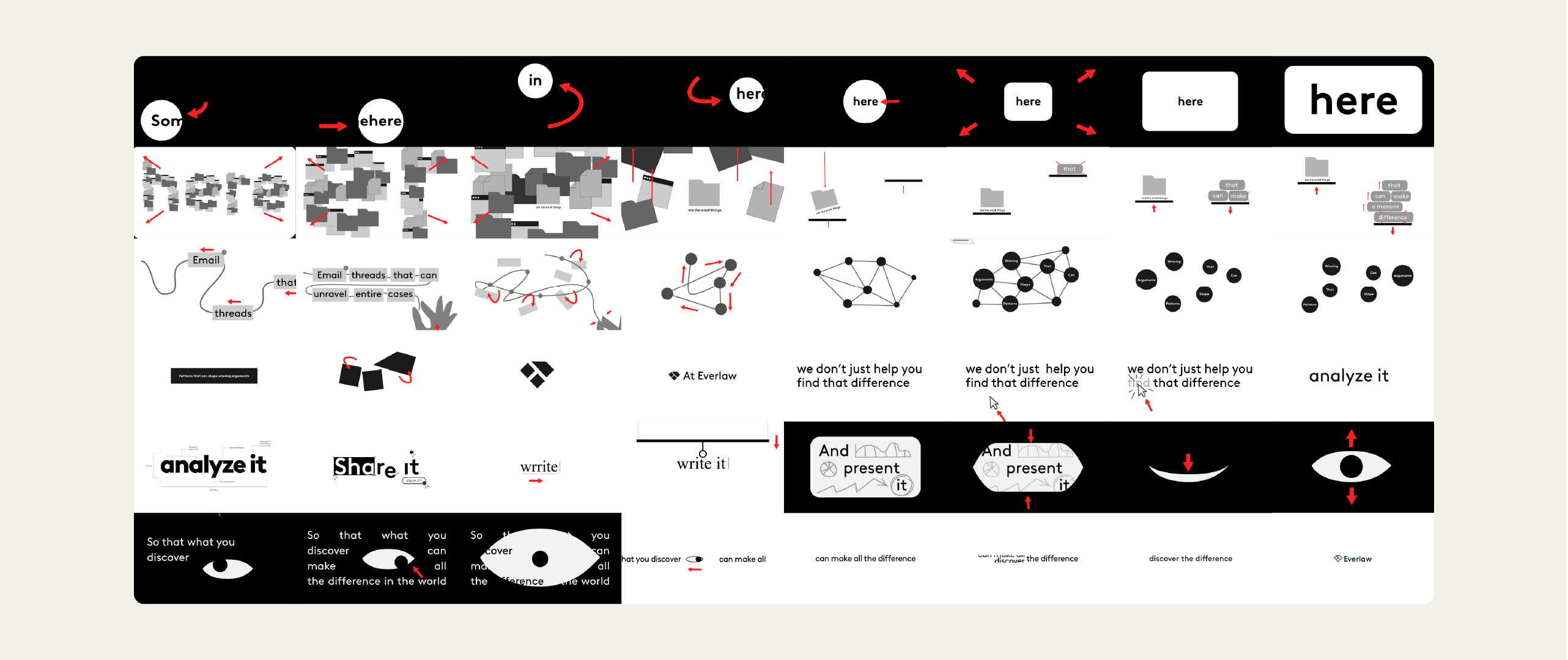 Over the past two years, we’ve been working closely with Everlaw on their ongoing brand campaign Discover the Difference. What began as a request to create a set of TV spots highlighting key platform features evolved into a long-term collaboration focused on defining how the Everlaw brand behaves in motion.Together with my creative partner Maayan Erlich, we developed a growing library of videos, modular assets, and motion systems that now shape how the brand communicates across platforms.